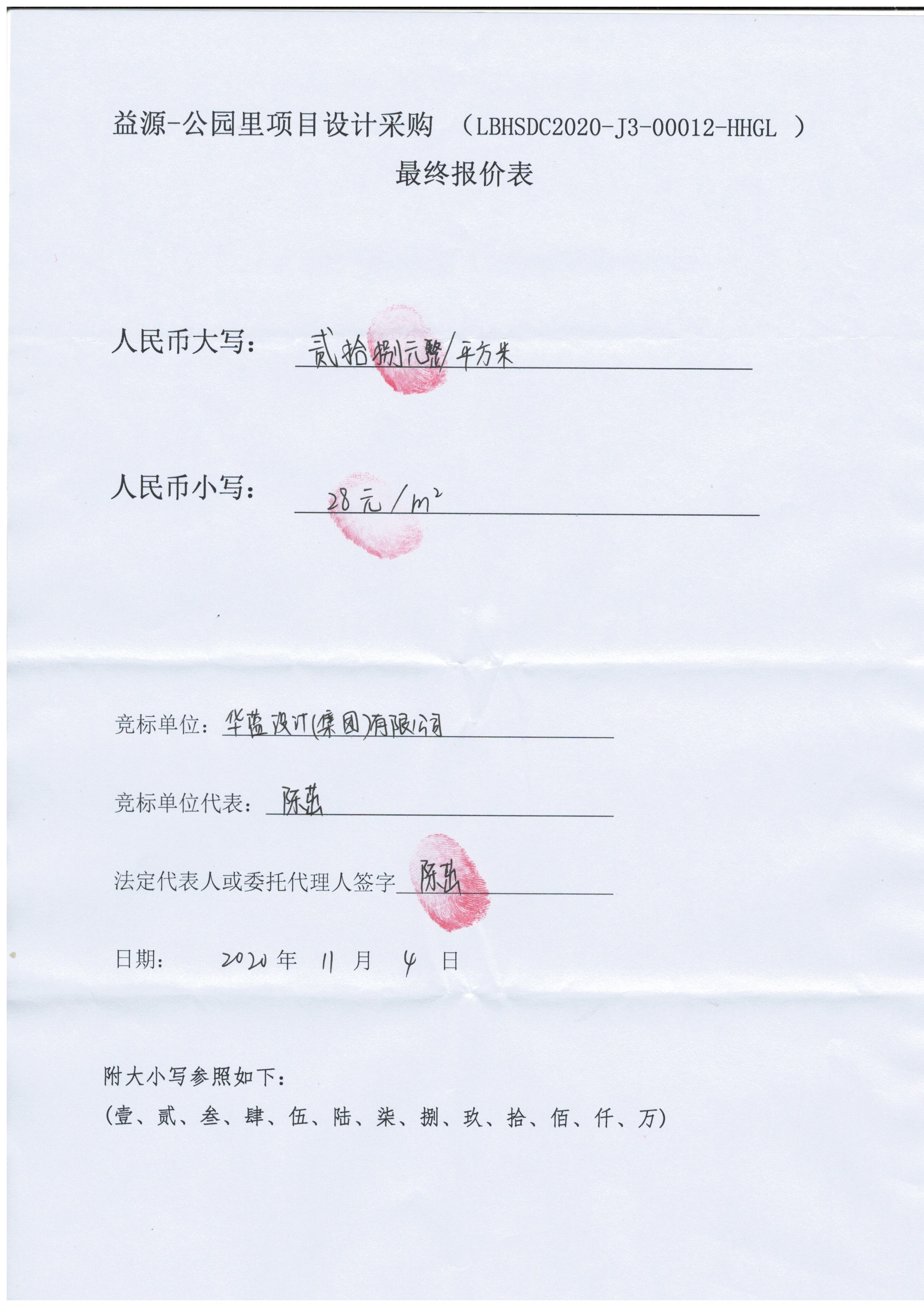 廣西鴻匯工程項目管理有限公司 益源-公園里項目設計采購 (項目編號:LBHSDC2020-J3-00012-HHGL ) 成交公告